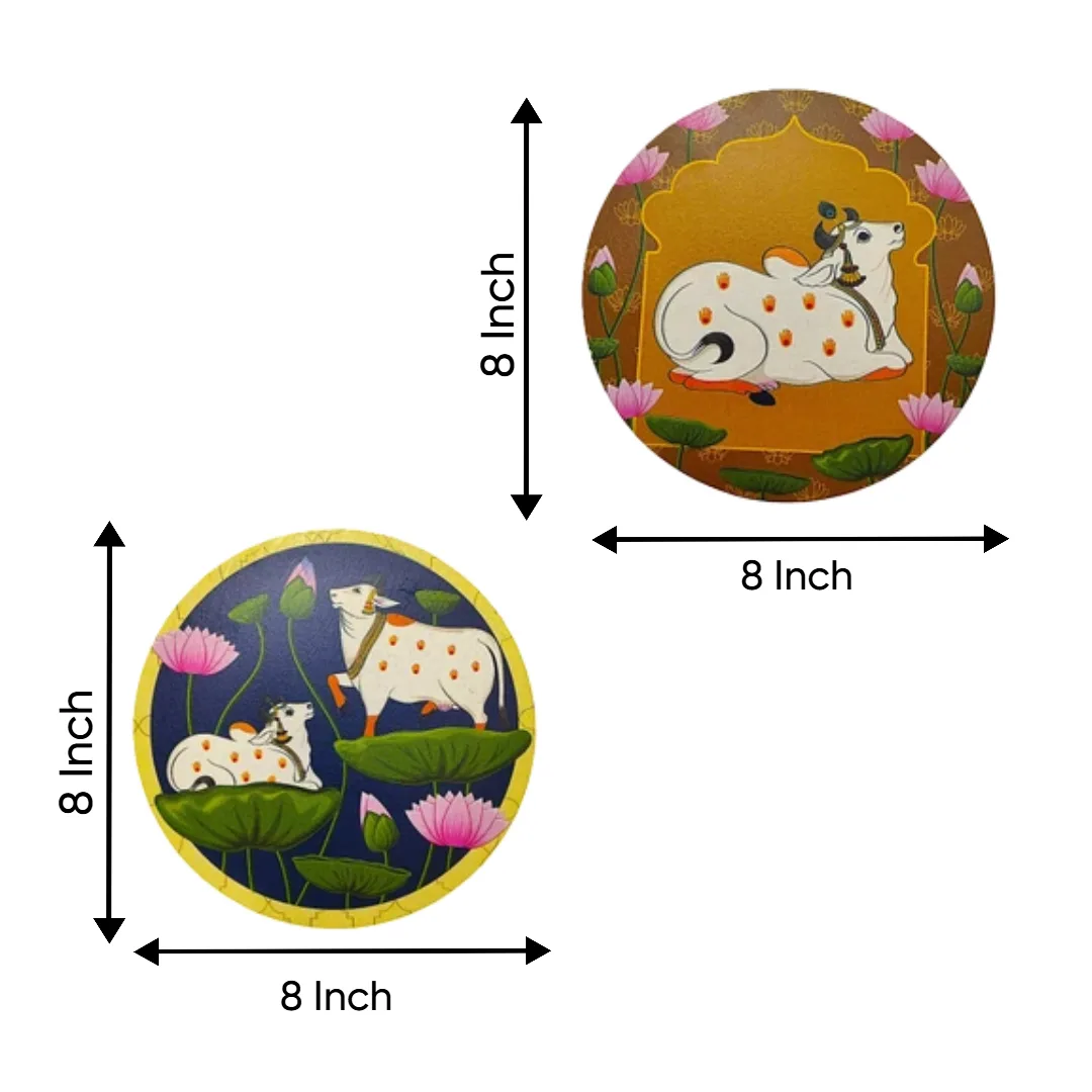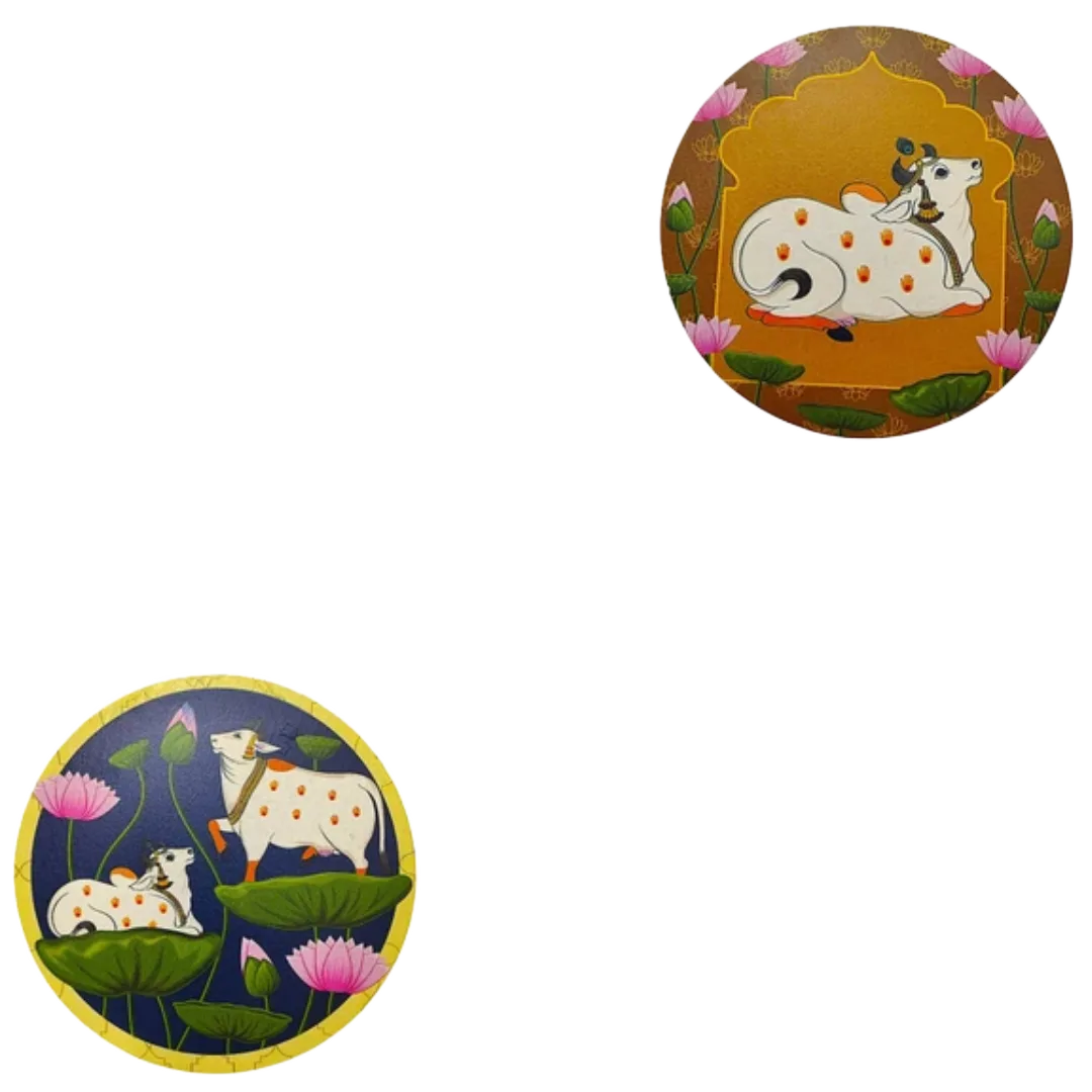 Peaceful cows illustrated in classic miniature art style